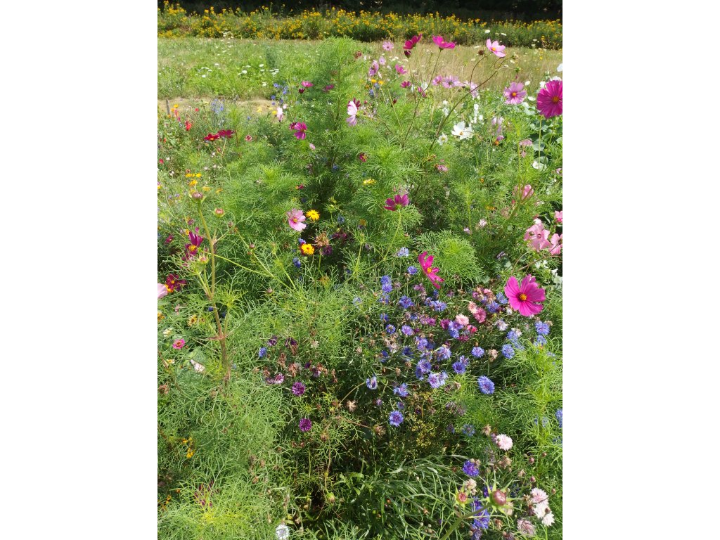 Nosné druhy letniček ve směsi: Cosmos (Krásenka), Malva (Sléz), Lavatera (Slézovec), Zinnia (Ostálka), Calendula (Měsíček), Centaurea